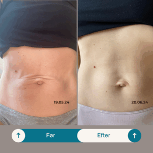 4 guidede massagevideoer, lærer dig teknikkerne, så du selv kan udføre massagen og stramme mavehuden op. Se resultatet af 31 dage med 3 minutters mavemassage herunder.